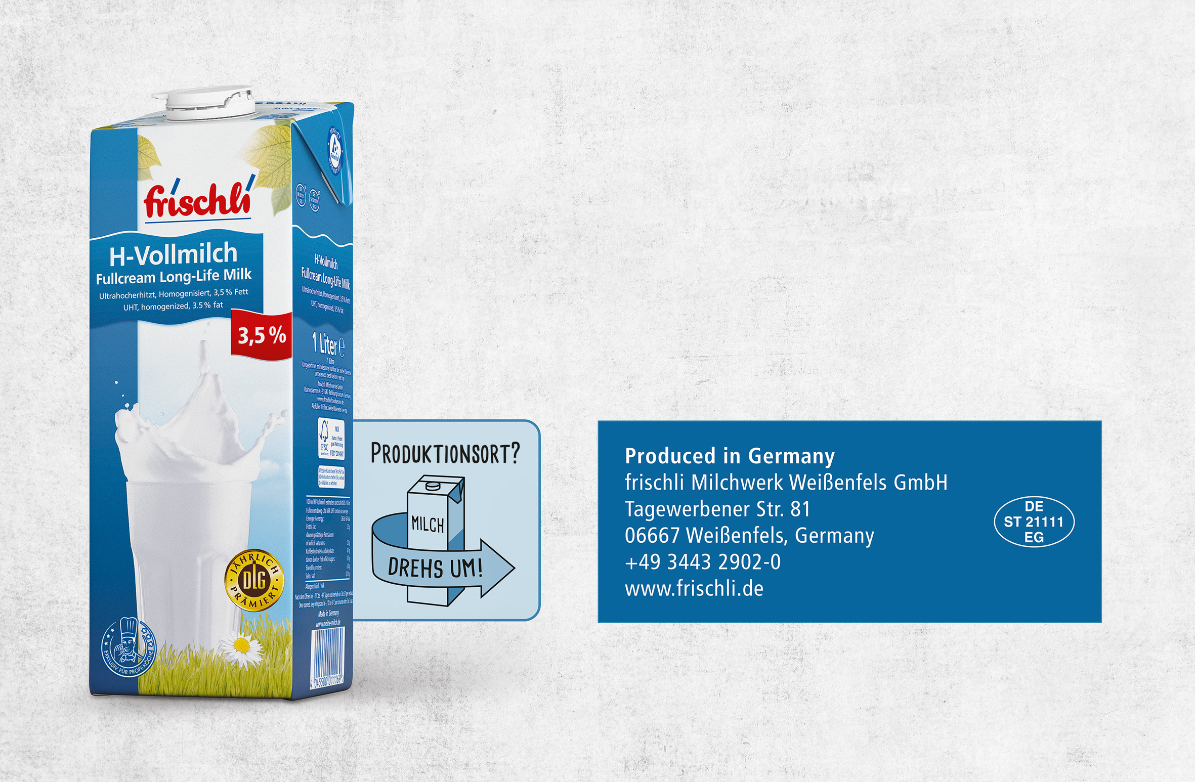 Ob in der Kaffeebar oder im Fastfood-Restaurant: H-Milch ist für alle Bereiche des Foodservice ein wesentliches und allgegenwärtiges Produkt. Doch während beispielsweise bei Frischfleisch und Eiern Einkaufsentscheider auf Qualität aus Deutschland achten, oder bei Kaffee und Kakao auf Qualitätssiegel wie Fairtrade beziehungsweise auf eine UTZ-Zertifizierung Wert legen, spielen solche Kriterien bei der Wahl der H-Milch bislang eine untergeordnete Rolle. Einkäufern ist vielfach gar nicht bewusst, wie einfach sich ein deutsches, qualitativ hochwertiges Produkt erkennen lässt: Der Seitenaufdruck gibt Aufschluss über den Produktionsstandort – nicht unbedingt der Markenname. Entsprechend lautet die simple wie eingängige Empfehlung im Rahmen der Qualitätsoffensive der frischli Milchwerke: „Drehs um!“